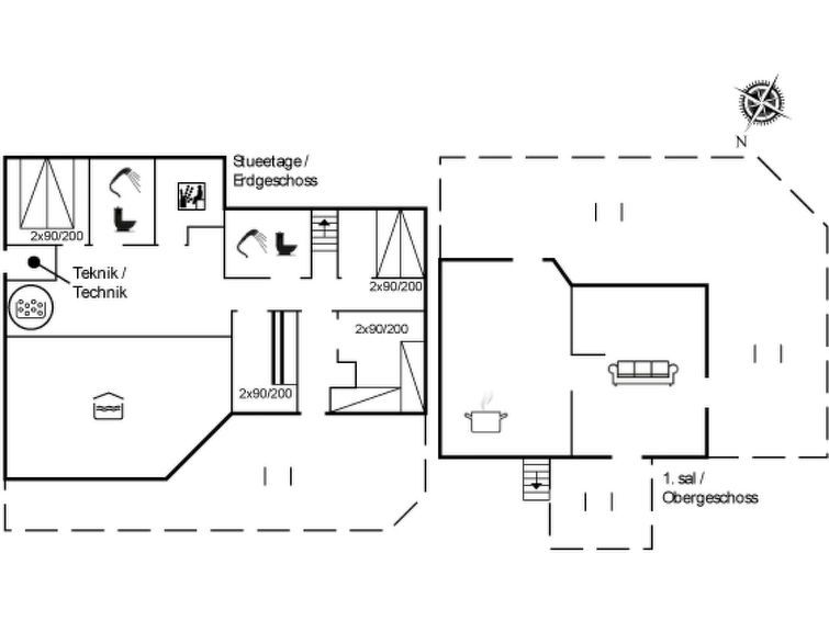 "Swerting" - 230m from the sea", 4-room house 150 m2. Object suitable for 8 adults. Living room with TV and radio. 1 room with 1 double bed. 1 room with 2 beds. 1 room with 1 x 2 bunk beds. 1 room with 1 double bed. Kitchen (4 hot plates, oven, dishwasher, microwave, freezer). Shower/WC, hydro massage bath.