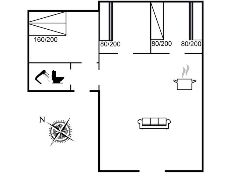 "Evi" - 500m from the sea", 3-room house 65 m2. Object suitable for 6 adults. Living room with TV and radio. 1 room with 1 double bed. 1 room with 1 bed and 1 x 2 bunk beds. 1 room with 1 x 2 bunk beds. Kitchen (oven, 4 ceramic glass hob hotplates, microwave, freezer). Shower/WC. Facilities: Internet (WiFi).