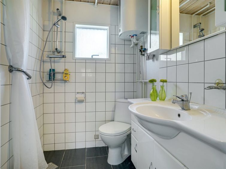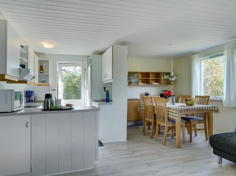 "Akira" - 500m to the fjord", 2-room house 65 m2. Object suitable for 2 adults + 2 children. Living room with TV and radio. 1 room with 1 double bed. 1 room with 1 double sofabed and 1 x 2 bunk beds. Kitchen (oven, dishwasher, 4 ceramic glass hob hotplates, freezer). Shower/WC. Conservatory.