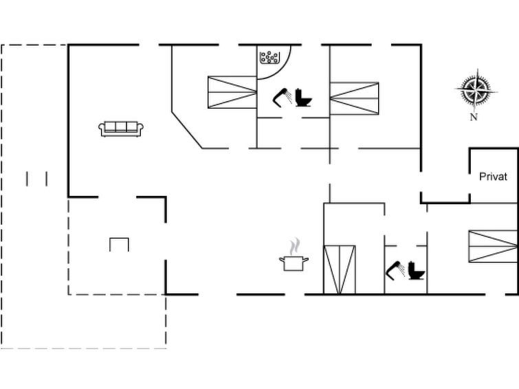 "Kringfod" - 590m from the sea", 4-room house 141 m2. Object suitable for 8 adults. Living room with TV and radio. 1 room with 1 double bed. 1 room with 1 double bed. 1 room with 1 double bed. 1 room with 1 double bed. Kitchen (oven, dishwasher, 4 ceramic glass hob hotplates, microwave).