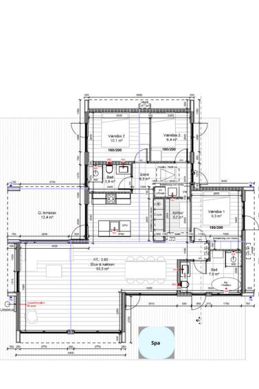 "Jahn" - 250m to the fjord", 3-room house 117 m2. Object suitable for 8 adults. Living room with TV. 1 room with 1 double bed. 1 room with 1 double bed. Open gallery, 1 room with 1 double bed and 2 sleeping facilities. Kitchen (oven, dishwasher, 4 induction hot plates, freezer). 2 showers/WC.