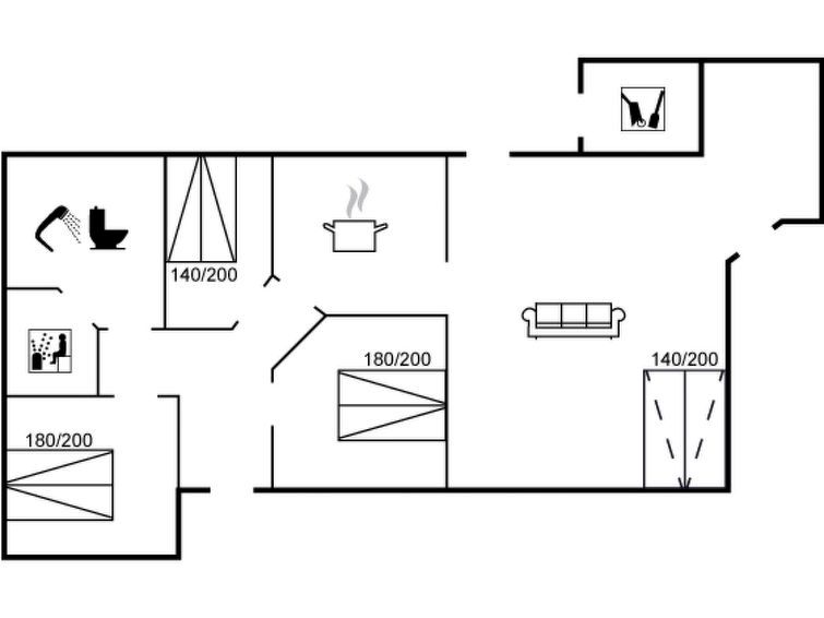 "Ansfried" - 900m from the sea", 4-room house 87 m2. Object suitable for 6 adults + 1 child. Living room with 1 double sofabed and TV. 1 room with 1 double bed. 1 room with 1 double bed. 1 room with 1 x 2 bunk beds. Kitchen (oven, dishwasher, 4 ceramic glass hob hotplates, freezer).