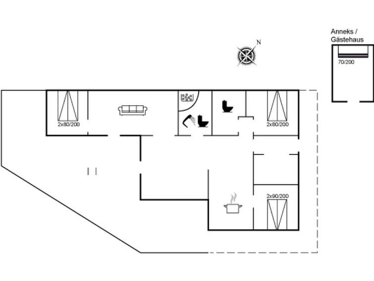 "Lisemarie" - 800m from the sea", 4-room house 122 m2. Object suitable for 8 adults + 1 child. Living room with TV, radio and DVD. 1 room with 1 double bed. 1 room with 1 double bed. Studio 1 room with with 1 x 2 bunk beds, 1 double bed. Kitchen (oven, dishwasher, 4 induction hot plates, microwave, freezer).