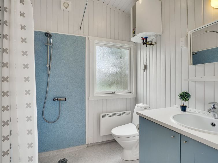 "Mads" - 950m from the sea", 3-room house 65 m2. Object suitable for 5 adults. Living room with TV, radio and CD-player. 1 room with 1 double bed. 1 room with 1 double bed. 1 room with 1 x 2 bunk beds. Kitchen (oven, dishwasher, 4 ceramic glass hob hotplates, freezer). Shower/WC. Terrace 14 m2, roofed.