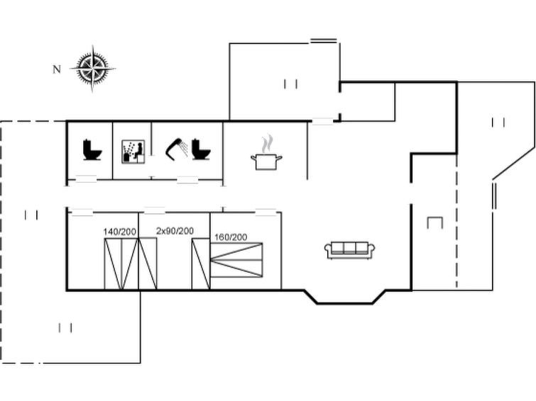 "Suometar" - 400m from the sea", 3-room house 88 m2. Object suitable for 6 adults. Living room with TV and radio. 1 room with 1 double bed. 1 room with 1 double bed. 1 room with 2 beds. Kitchen (oven, dishwasher, 4 ceramic glass hob hotplates, microwave). 2 showers/WC. Terrace 8 m2, roofed.