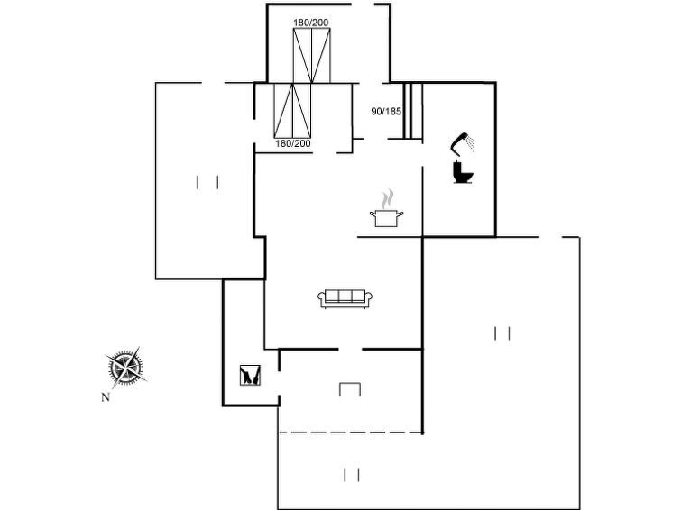 "Alvilde" - 100m from the sea", 3-room house 84 m2. Object suitable for 6 adults. Living room with TV, radio, CD-player and hi-fi system. 1 room with 1 double bed. 1 room with 1 x 2 bunk beds. 1 room with 1 double bed. Kitchen (oven, dishwasher, 4 induction hot plates, microwave, freezer).