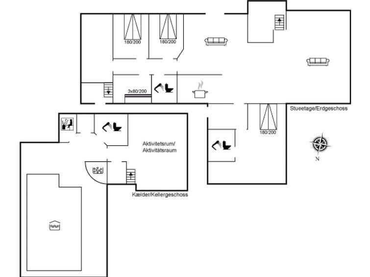 "Aster" - 150m from the sea", 4-room house 273 m2. Object suitable for 8 adults + 1 child. Living room with open-hearth fireplace and TV. 1 room with 1 double bed. 1 room with 1 double bed. 1 room with 1 x 2 bunk beds. 1 room with 1 double bed. Kitchen (oven, dishwasher, 4 induction hot plates, microwave, freezer).