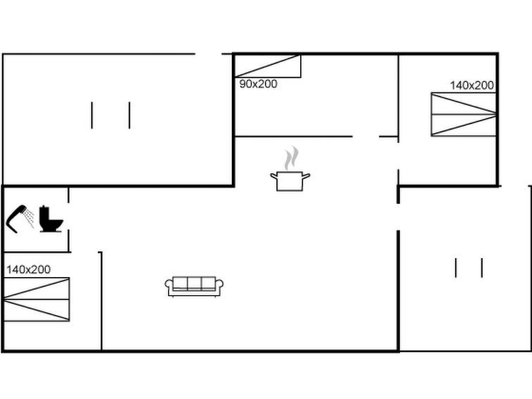 "Dyveke" - 220m from the sea", 3-room house 85 m2. Object suitable for 4 adults. Living room with TV and radio. 1 room with 1 double bed. 1 room with 1 double bed. 1 room with 1 bed. Kitchen (oven, dishwasher, 4 ceramic glass hob hotplates, microwave, freezer). Shower/WC. Facilities: Internet (WiFi).