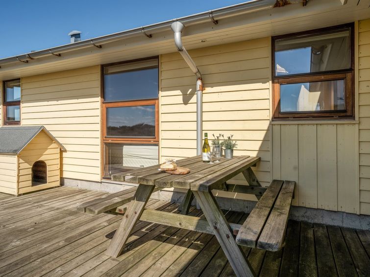 "Fam" - 300m from the sea", 3-room house 117 m2. Object suitable for 6 adults + 3 children. Living room with TV, radio, CD-player and hi-fi system. 1 room with 1 double bed. 1 room with 1 double bed. Open gallery, 1 room with 1 double bed and 2 sleeping facilities. Kitchen (oven, dishwasher, 4 ceramic glass hob hotplates, microwave, freezer).