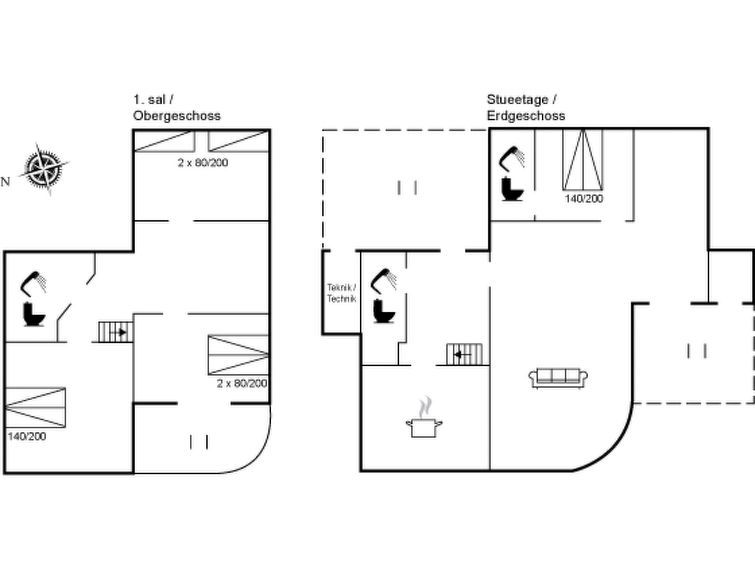 "Hillegonde" - 84m from the sea", 4-room house 195 m2. Object suitable for 8 adults. Living room with TV and radio. 1 room with 1 double bed. Kitchen (oven, dishwasher, 4 induction hot plates, microwave, freezer). 3 showers/WC. Upper floor: 1 room with 1 double bed. 1 room with 1 double bed.