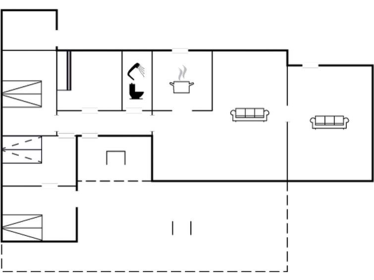 "Thorvor" - 400m from the sea", 4-room house 112 m2. Object suitable for 6 adults. Living room with open-hearth fireplace and TV. 1 room with 1 double bed. 1 room with 1 double bed. 1 room with 1 x 2 bunk beds. 1 room with 1 double sofabed. Kitchen (oven, dishwasher, 4 induction hot plates, microwave, freezer).
