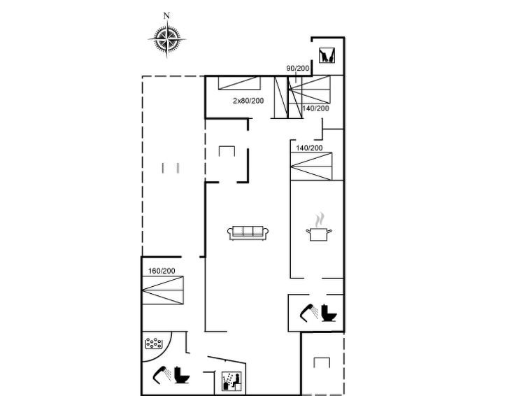 "Orvokki" - 125m from the sea", 4-room house 110 m2. Object suitable for 8 adults + 1 child. Living room with TV. 1 room with 1 double bed. 1 room with 2 beds. 1 room with 1 double bed. 1 room with 1 double bed. Kitchen (oven, dishwasher, 4 ceramic glass hob hotplates, microwave, freezer).