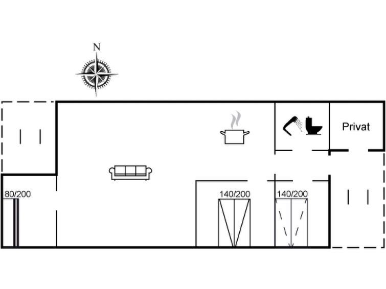 "Vemund" - 300m from the sea", 3-room house 69 m2. Object suitable for 4 adults. Living room with TV and radio. 1 room with 1 double bed. 1 room with 1 x 2 bunk beds. 1 room with 1 double sofabed. Kitchen (oven, dishwasher, 4 ceramic glass hob hotplates, freezer). Shower/WC. Facilities: Internet (WiFi).