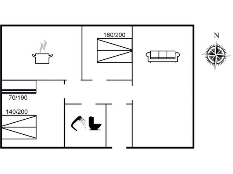 "France" - 5km from the sea", 2-room house 78 m2. Object suitable for 6 adults. Living room with TV, radio and DVD. 1 room with 1 x 2 bunk beds, 1 double bed. 1 room with 1 double bed. Kitchen (oven, dishwasher, 4 ceramic glass hob hotplates, microwave, freezer). Shower/WC. Facilities: children's high chair.