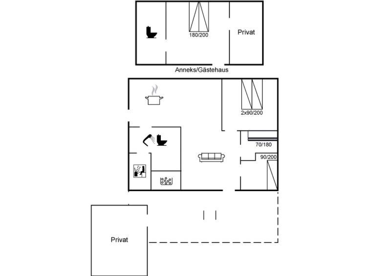 "Jytte" - 1.7km from the sea", 4-room house 100 m2. Object suitable for 5 adults + 3 children. Living room with TV and radio. 1 room with 2 beds. 1 room with 1 bed. Studio 1 room with with 1 x 2 bunk beds, 1 double bed. Kitchen (oven, dishwasher, 4 ceramic glass hob hotplates, microwave, freezer).