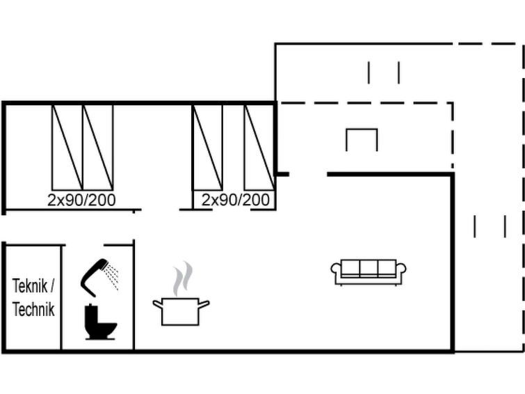 "Hubertina" - 30km from the sea", 2-room house 59 m2. Object suitable for 4 adults. Living room with TV, hi-fi system and DVD. 1 room with 1 double bed. Studio 1 room with with 2 beds. Kitchen (4 hot plates, oven, dishwasher, microwave, freezer). Shower/WC. Terrace 5 m2, roofed. Facilities: Internet (WiFi).
