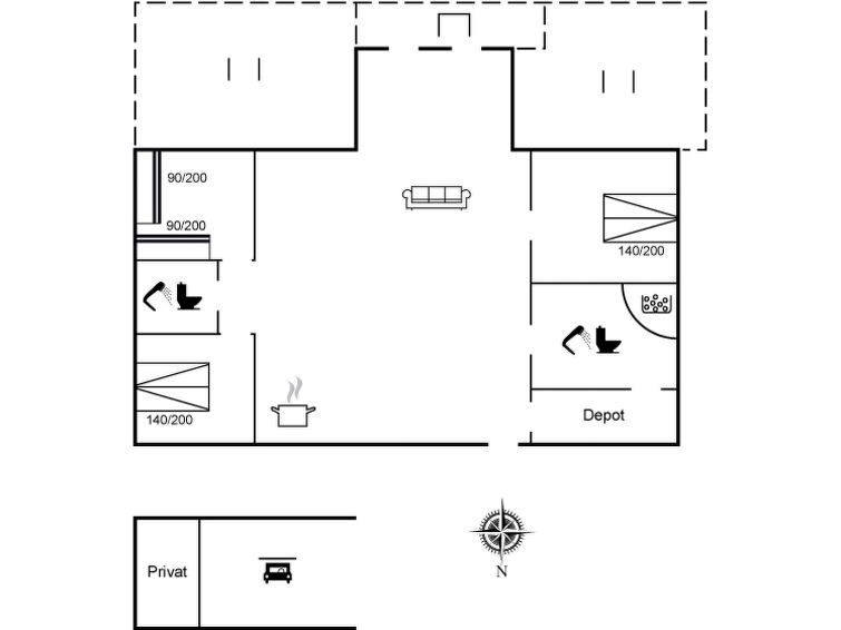 "Quanna" - 30km from the sea", 3-room house 120 m2. Object suitable for 8 adults. Living room with TV, radio and DVD. 1 room with 1 double bed. 1 room with 1 double bed. Open gallery, 1 room with 1 double sofabed and 2 x 2 bunk beds. Kitchen (oven, dishwasher, 4 ceramic glass hob hotplates, microwave, freezer).
