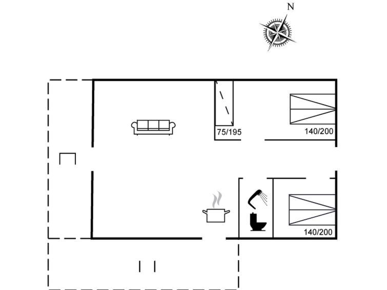 "Undine" - 300m from the sea", 2-room house 70 m2. Object suitable for 4 adults + 1 child. Living room with TV, radio, CD-player and hi-fi system. 1 room with 1 double bed. 1 room with 1 sofabed and 1 double bed. Kitchen (4 hot plates, oven, dishwasher, freezer). Shower/WC. Terrace 20 m2, roofed.