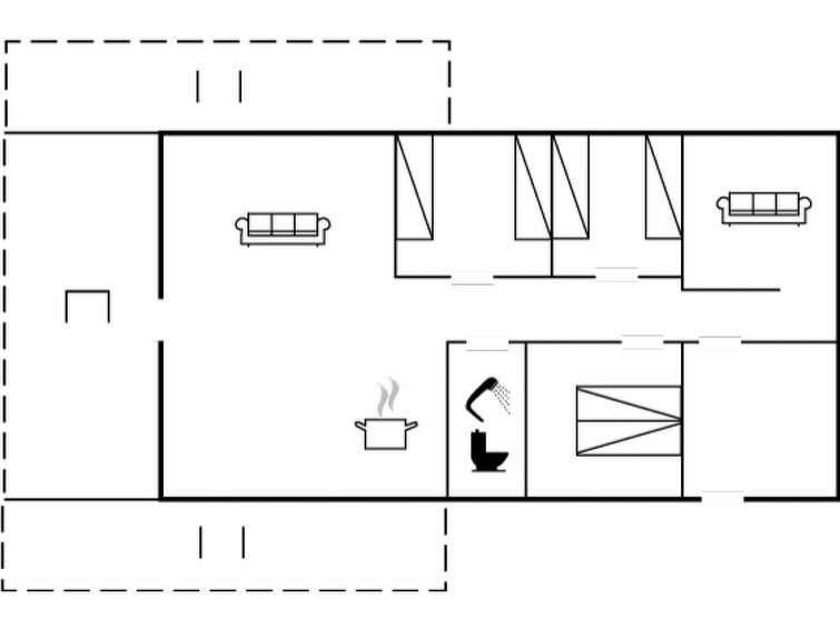 "Elsa" - 700m from the sea", 3-room house 85 m2. Object suitable for 6 adults. Living room with TV, video, radio, CD-player and hi-fi system. 1 room with 1 double bed. 1 room with 2 beds. 1 room with 2 beds. Kitchen (4 hot plates, oven, dishwasher, microwave, freezer). Shower/WC. Terrace 23 m2, roofed.