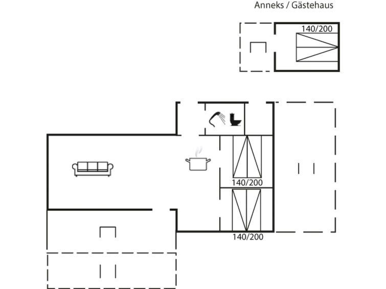 "Iven" - 140m from the sea", 3-room house 56 m2. Object suitable for 4 adults + 1 child. Living room, Studio with with 1 double bed and TV. 1 room with 1 double bed. 1 room with 1 double bed. Kitchen (oven, dishwasher, 4 induction hot plates, freezer). Shower/WC. Terrace 20 m2, roofed.