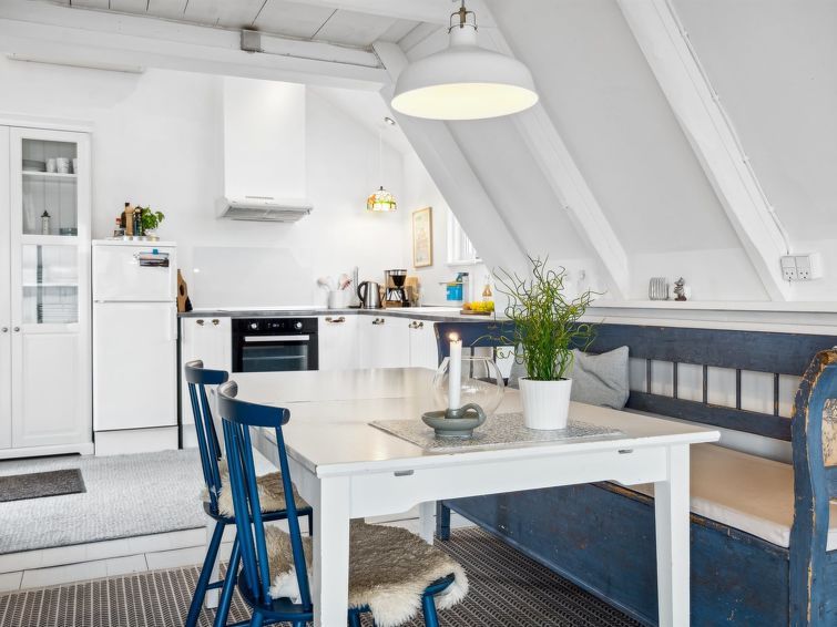 "Fifi" - 10m to the fjord", 2-room house 65 m2. Object suitable for 4 adults + 1 child. Living room with TV. Studio 1 room with with 1 double bed. Kitchen (oven, dishwasher, 4 induction hot plates, freezer). Shower/WC. Terrace 2 m2, roofed. Of the bay. Facilities: children's high chair, baby cot.