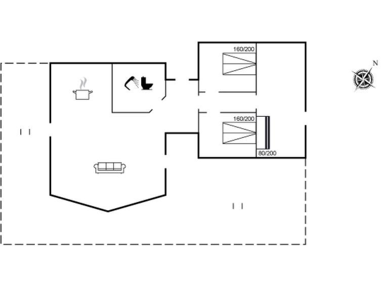 "Bjerund" - 250m from the sea", 3-room house 119 m2. Object suitable for 6 adults + 1 child. Living room with TV. 1 room with 1 double bed. 1 room with 1 double bed. 1 room with 1 x 2 bunk beds. Kitchen (oven, dishwasher, 5 induction hot plates, freezer). Shower/WC. Facilities: children's high chair, baby cot.