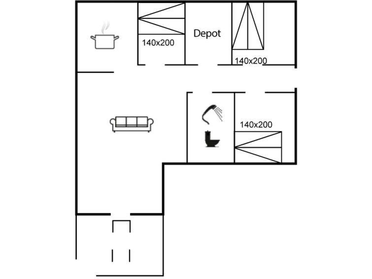 "Magga" - 3.2km from the sea", 3-room house 65 m2. Object suitable for 6 adults. Living room with TV and radio. 1 room with 1 double bed. 1 room with 1 double bed. 1 room with 1 double bed. Kitchen (4 hot plates, oven, dishwasher, microwave, freezer). Shower/WC. Terrace 12 m2, roofed.