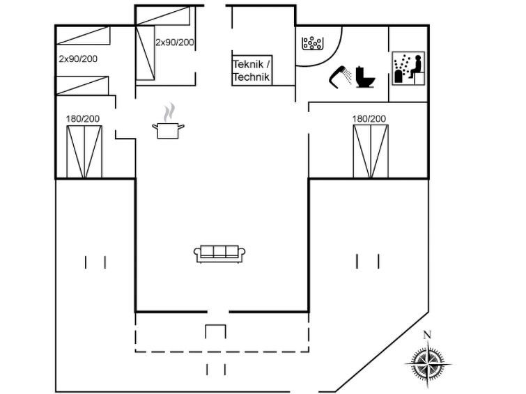 "Thythkil" - 3km from the sea", 4-room house 120 m2. Object suitable for 8 adults. Living room with TV, hi-fi system and DVD. 1 room with 1 double bed. 1 room with 2 beds. 1 room with 2 beds. 1 room with 1 double bed. Kitchen (oven, dishwasher, 4 ceramic glass hob hotplates, microwave, freezer).