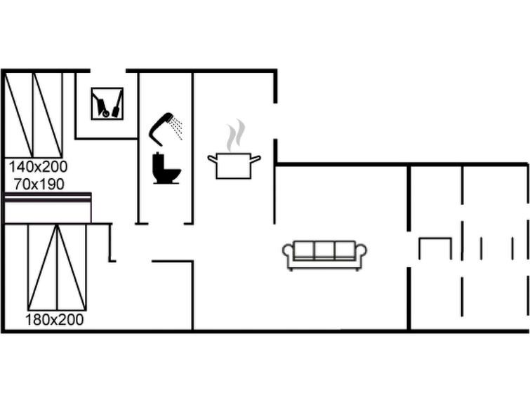"Tirsa" - 3.9km from the sea", 2-room house 69 m2. Object suitable for 5 adults. Living room with open-hearth fireplace, TV, CD-player and hi-fi system. 1 room with 1 double bed and 1 sleeping facility. 1 room with 1 double bed. Kitchen (3 hot plates, oven, dishwasher, microwave, freezer).