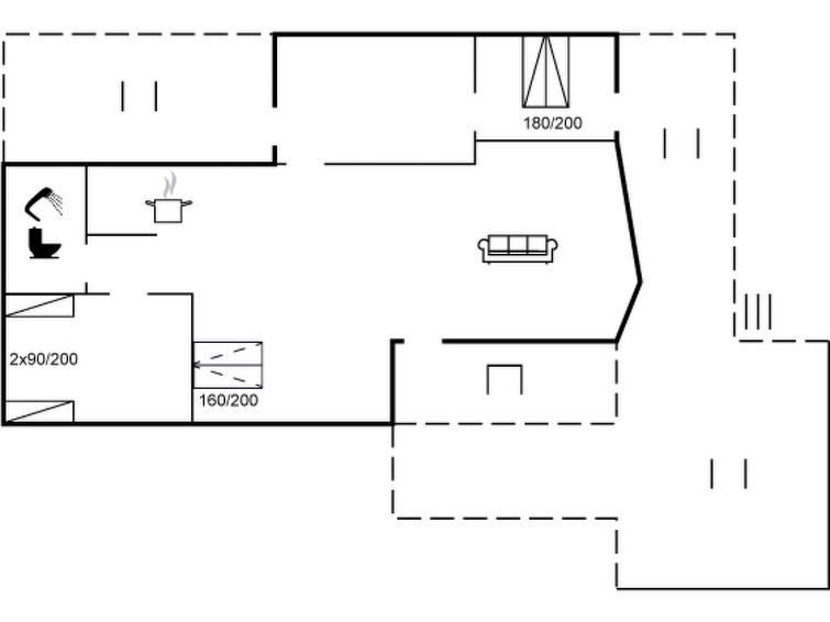 "Fokke" - 450m from the sea", 3-room house 96 m2. Object suitable for 6 adults. Living room with 1 double sofabed and TV. 1 room with 1 double bed. 1 room with 2 beds. Kitchen (oven, dishwasher, 4 ceramic glass hob hotplates, microwave, freezer). Shower/WC. View of the sea. Facilities: children's high chair, baby cot.
