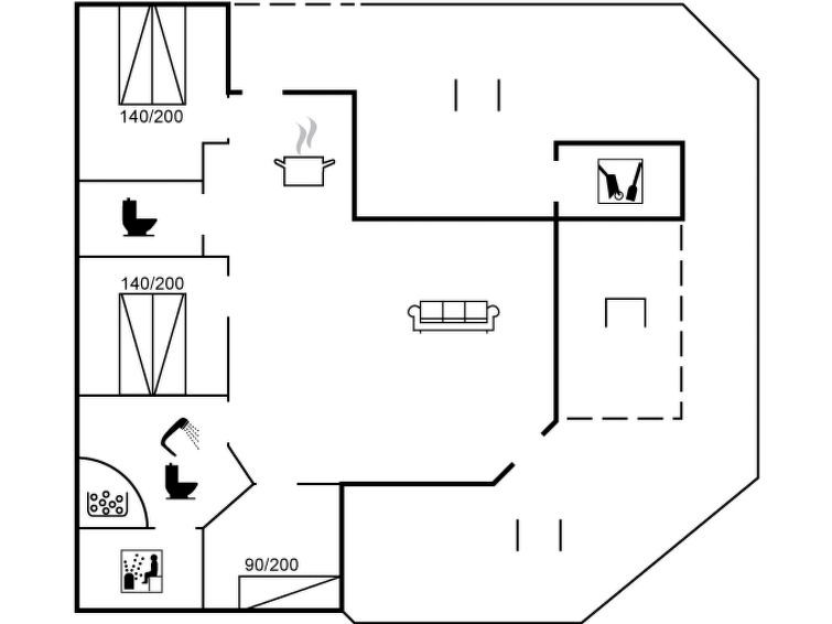 "Guldborg" - 400m to the fjord", 3-room house 80 m2. Object suitable for 7 adults + 1 child. Living room with TV, radio and CD-player. 1 room with 1 double bed. 1 room with 1 double bed. 1 room with 1 bed and 1 x 2 bunk beds. Kitchen (oven, dishwasher, 4 ceramic glass hob hotplates, microwave, freezer).