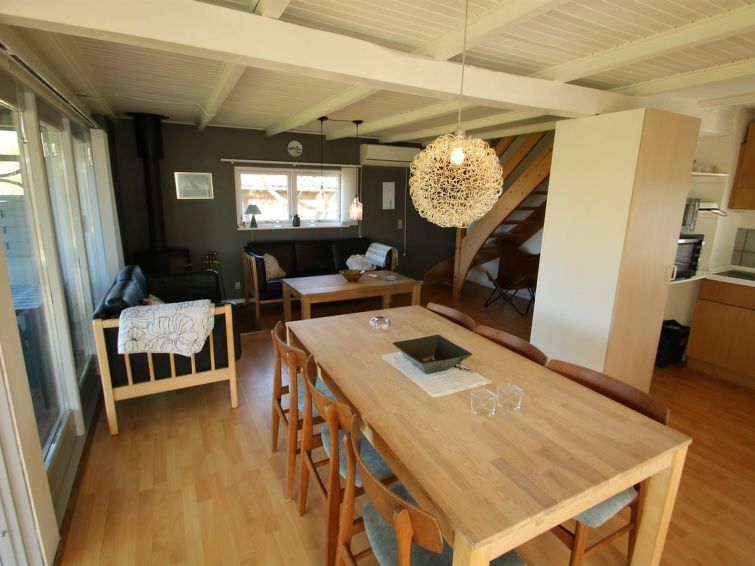 "Sauli" - 200m to the fjord", 2-room house 60 m2. Object suitable for 4 adults + 1 child. Living room with TV and radio. 1 room with 1 double bed. 1 room with 2 beds. Kitchen (oven, 4 ceramic glass hob hotplates, freezer). Shower/WC. Of the bay. Facilities: children's high chair, baby cot.