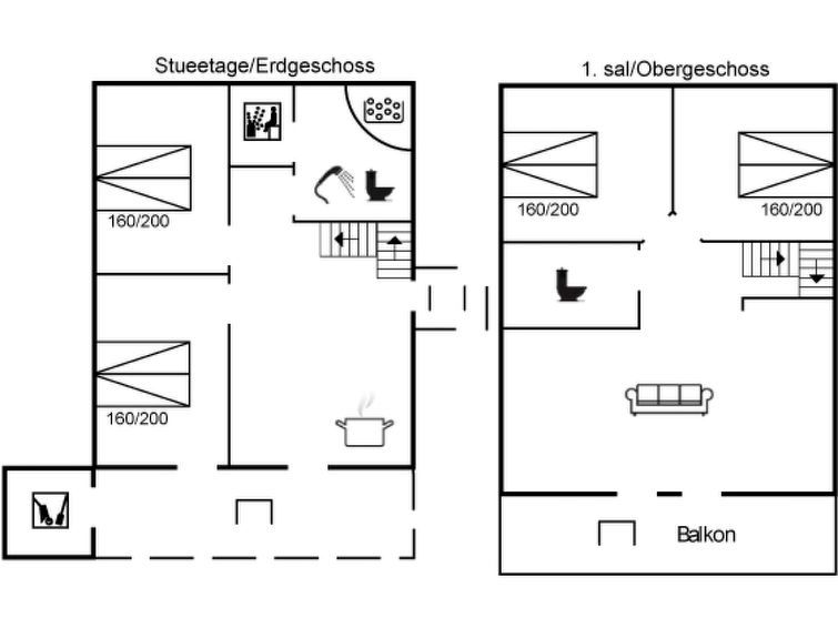 "Uffe" - 100m to the fjord", 4-room house 102 m2. Object suitable for 8 adults + 1 child. Living room with TV, radio and DVD. 1 room with 1 double bed. 1 room with 1 double bed. 1 room with 1 double bed. 1 room with 1 double bed. Kitchen (oven, dishwasher, 4 ceramic glass hob hotplates, microwave, freezer).