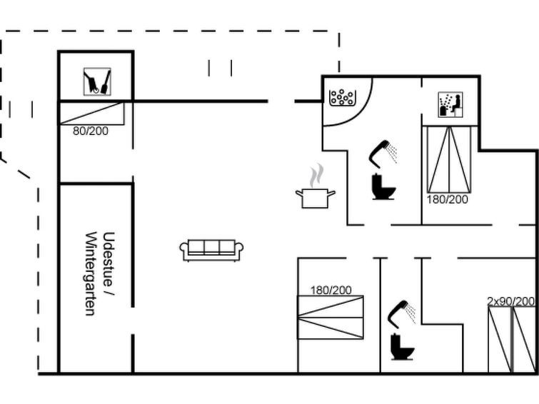 "Andine" - 1.2km from the sea", 4-room house 115 m2. Object suitable for 7 adults. Living room with TV, radio, CD-player and DVD. 1 room with 1 double bed. 1 room with 1 double bed. 1 room with 2 beds. 1 room with 1 bed. Kitchen (oven, dishwasher, 4 ceramic glass hob hotplates, microwave, freezer).