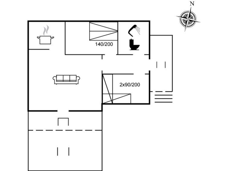 "Delia" - 300m from the sea", 2-room house 56 m2. Object suitable for 4 adults. Living room with TV, radio and CD-player. 1 room with 1 double bed. 1 room with 1 bed and 1 sleeping facility. Kitchen (4 hot plates, oven). Shower/WC. Terrace 14 m2, roofed. Facilities: Internet (WiFi).