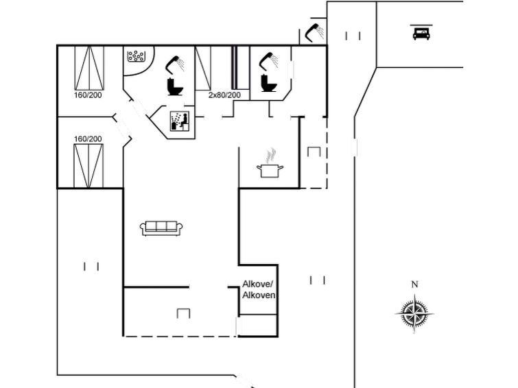 "Germaine" - 1.2km from the sea", 4-room house 98 m2. Object suitable for 7 adults. Living room with TV, radio, CD-player and DVD. 1 room with 1 double bed. 1 room with 1 double bed. 1 room with 2 beds and 1 sleeping facility. Kitchen (oven, dishwasher, 4 ceramic glass hob hotplates, microwave, freezer).