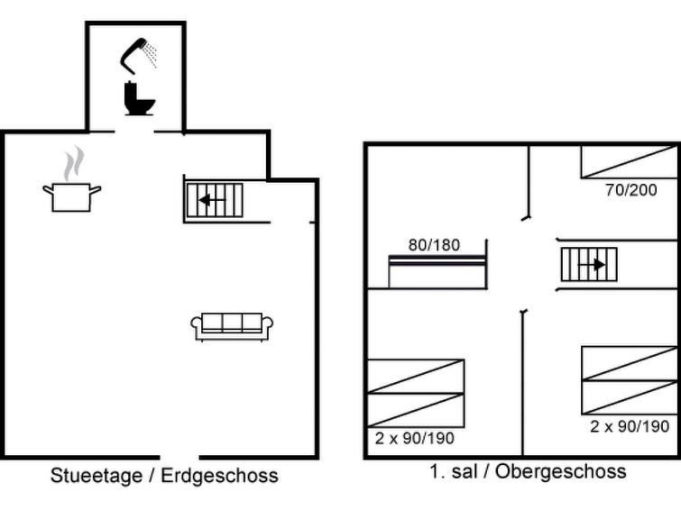 "Kolle" - 800m from the sea", 4-room apartment 81 m2. Object suitable for 7 adults. Living room with TV, radio and CD-player. Kitchen (4 hot plates, oven, dishwasher, freezer). Shower/WC. Upper floor: 1 room with 1 double bed. 1 room with 1 double bed. 1 room with 1 bed. 1 room with 1 x 2 bunk beds.