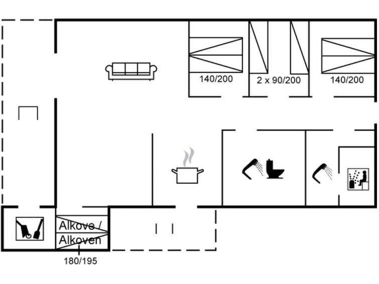 "Kustaa" - 1km from the sea", 3-room house 86 m2. Object suitable for 6 adults. Living room with TV, radio, CD-player and DVD. 1 room with 1 double bed. 1 room with 1 double bed. 1 room with 2 beds. Kitchen (oven, dishwasher, 4 induction hot plates, freezer). Shower/WC. Terrace 15 m2, roofed.