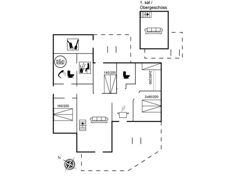 "Krum" - 300m from the sea", 4-room house 102 m2. Object suitable for 6 adults + 1 child. Living room with TV. 1 room with 1 double bed. 1 room with 1 bed and 1 sleeping facility. 1 room with 1 double bed. 1 room with 2 beds. Kitchen (oven, dishwasher, 4 ceramic glass hob hotplates, microwave, freezer).
