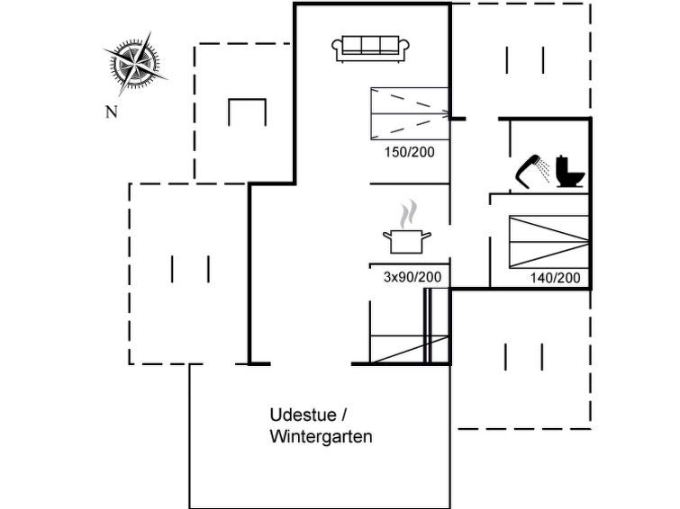 "Diddi" - 170m from the sea", 3-room house 79 m2. Object suitable for 6 adults. Living room with 2 sofabeds and TV. 1 room with 1 double bed. 1 room with 1 x 2 bunk beds. Kitchen (oven, dishwasher, 3 induction hot plates, microwave, freezer). Shower/WC. Conservatory. View of the sea.