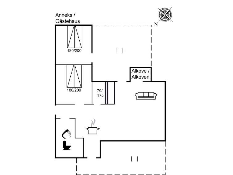 "Kamilla" - 200m from the sea", 3-room house 75 m2. Object suitable for 6 adults. Living room with TV. 1 room with 1 double bed. Studio 1 room with with 1 x 2 bunk beds, 1 double bed. Kitchen (oven, dishwasher, 4 induction hot plates, microwave, freezer). Shower/WC. Facilities: Internet (WiFi).