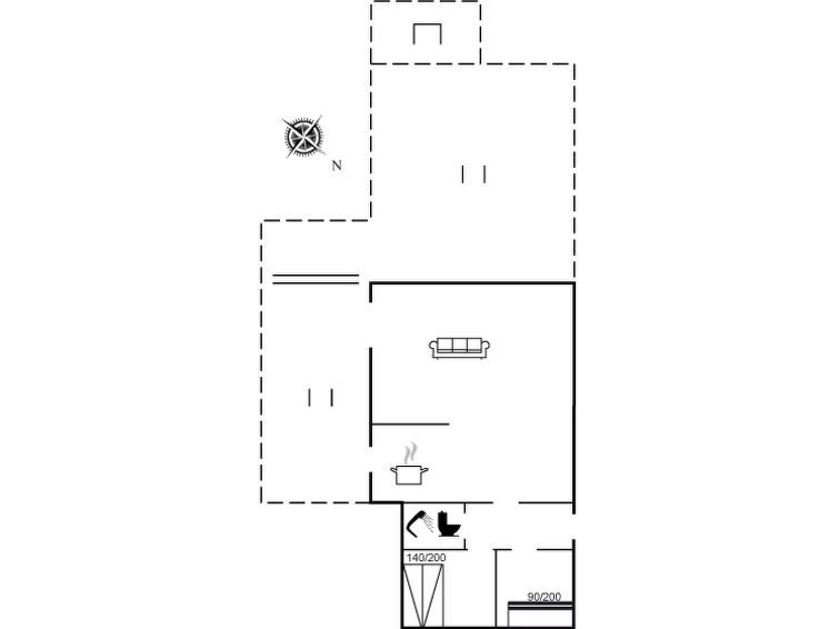 "Jeip" - 400m to the fjord", 2-room house 69 m2. Object suitable for 2 adults + 3 children. Living room with TV, radio and DVD. 1 room with 1 double bed. 1 room with 1 x 2 bunk beds. Kitchen (oven, dishwasher, 4 ceramic glass hob hotplates, microwave, freezer). Shower/WC. Terrace 10 m2, roofed.
