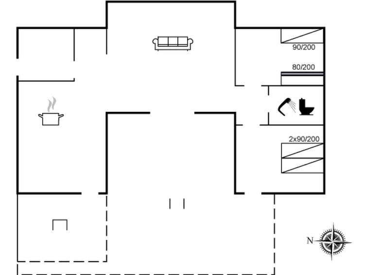 "Jouni" - 500m from the sea", 2-room house 92 m2. Object suitable for 5 adults. Living room with TV and radio. 1 room with 1 bed and 1 x 2 bunk beds. 1 room with 1 double bed. Kitchen (oven, dishwasher, 4 ceramic glass hob hotplates, microwave, freezer). Shower/WC. Terrace 14 m2, roofed.