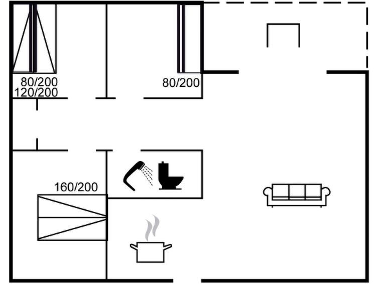 "Fulla" - 650m from the sea", 3-room house 70 m2. Object suitable for 6 adults. Living room with open-hearth fireplace and TV. 1 room with 1 double bed. 1 room with 1 x 2 bunk beds. 1 room with 1 x 2 bunk beds. Kitchen (oven, dishwasher, 4 induction hot plates, microwave, freezer).