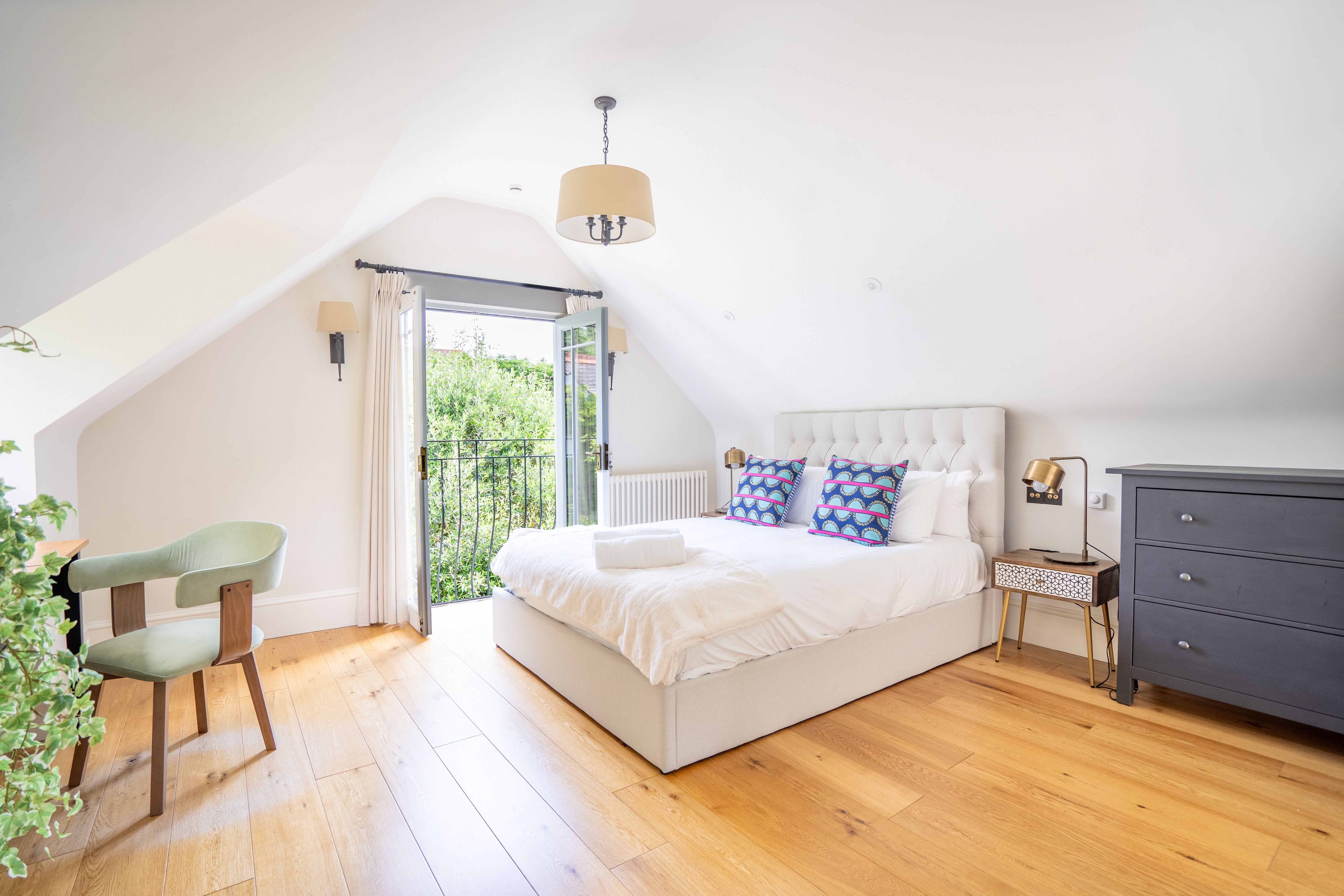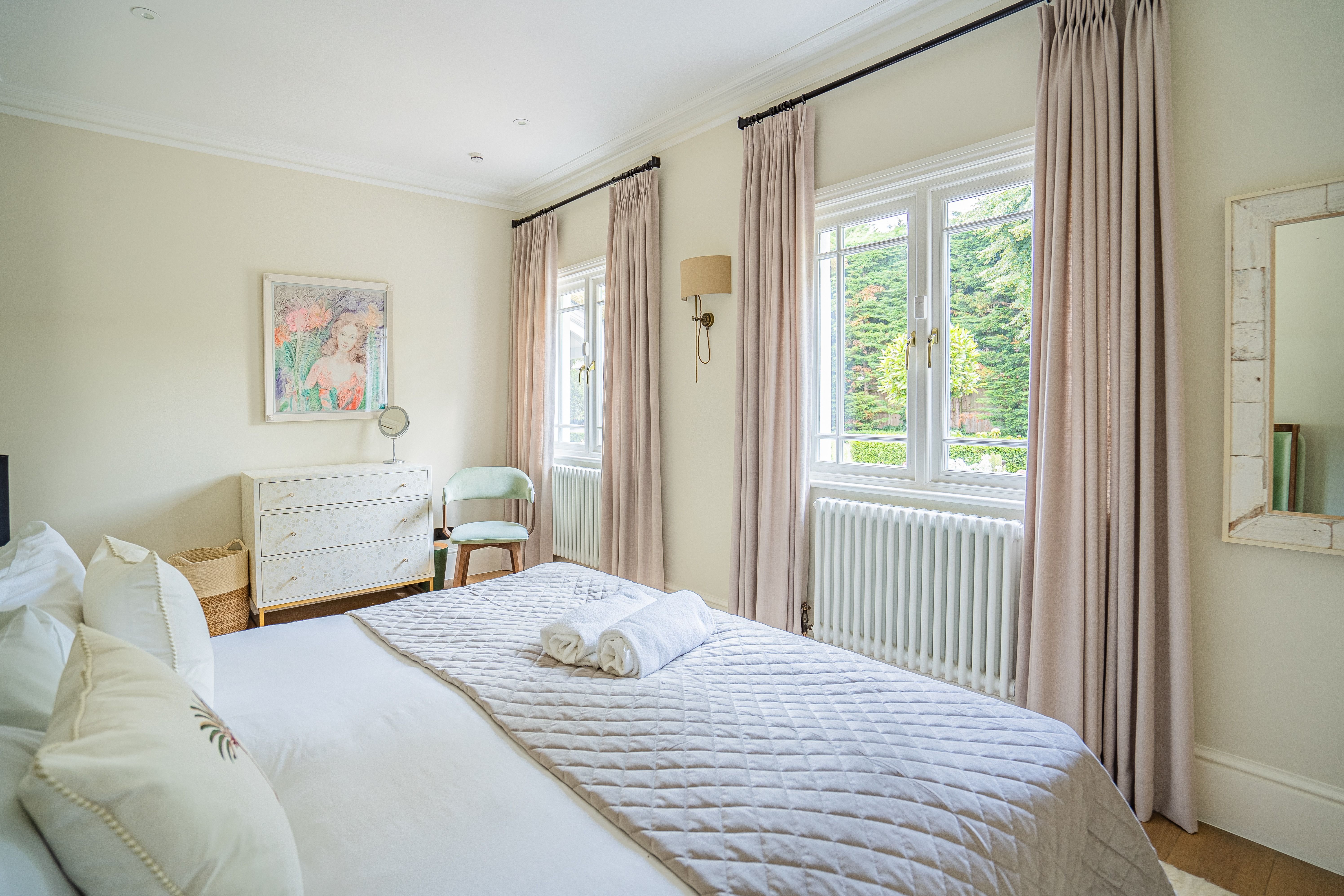Whether it's a private gym for morning workouts or a study for digital nomads, this Windsor home has plenty to boast about. Patio doors open straight onto the garden – perfect for evening aperitifs and summer barbecues. There's more than enough space in the lounge for everyone to get together, though if you need a bit of quiet time, each bedroom is as comfortable as the next. One is in a separate studio for extra privacy. As for the location, Windsor and all its royal offerings are just a short drive away.
