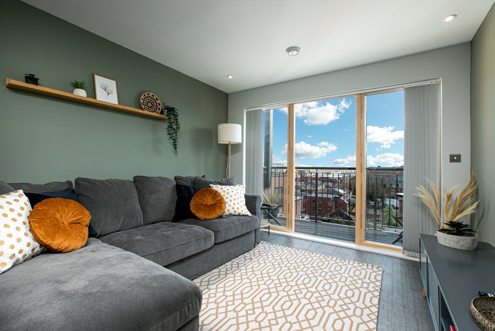Colour and light come together in perfect harmony at this beautiful home in Slough. Full of characterful details that make it stand out – from its colour block walls to its chic yet minimalist ornaments – you’ll feel at home from the moment you walk through the door. The bright living room features a comfortable sectional sofa (perfect for cosy Netflix movie nights) and large glass doors that lead out onto a private balcony. Sit here with your morning coffee or an evening nightcap and relish the quiet of your peaceful surroundings. The kitchen’s farmhouse-style dining table, meanwhile, invites celebratory meals and afternoons over board games if the weather turns, while the stylish bedrooms guarantee a restful night’s sleep. When you’re not hanging out in your beautiful home, go out and explore your surroundings. Windsor is just a ten-minute drive away (Windsor Castle is reachable in fifteen), while Legoland is also a mere fifteen minutes away by car.