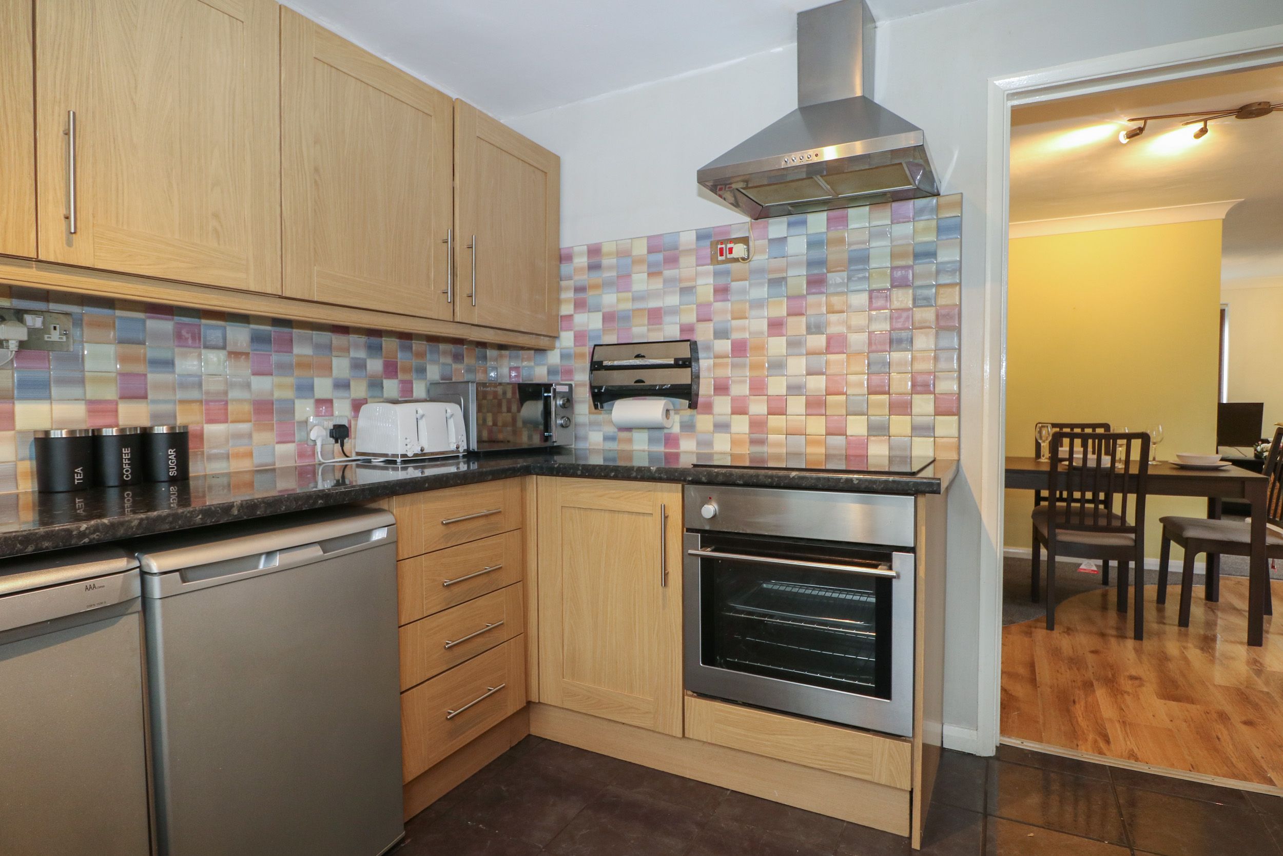 Amenities Electric heating. Electric oven, induction hob, microwave, 2 x fridge, washing machine, tumble dryer, dishwasher, kettle, toaster. TV, WiFi. Fuel and power inc. in rent. Bed linen and towels inc. in rent. Off-road parking for 1 car. Non-enclosed rear garden with astro turf and furniture. Shop 1.4 miles, pub 0.1 miles