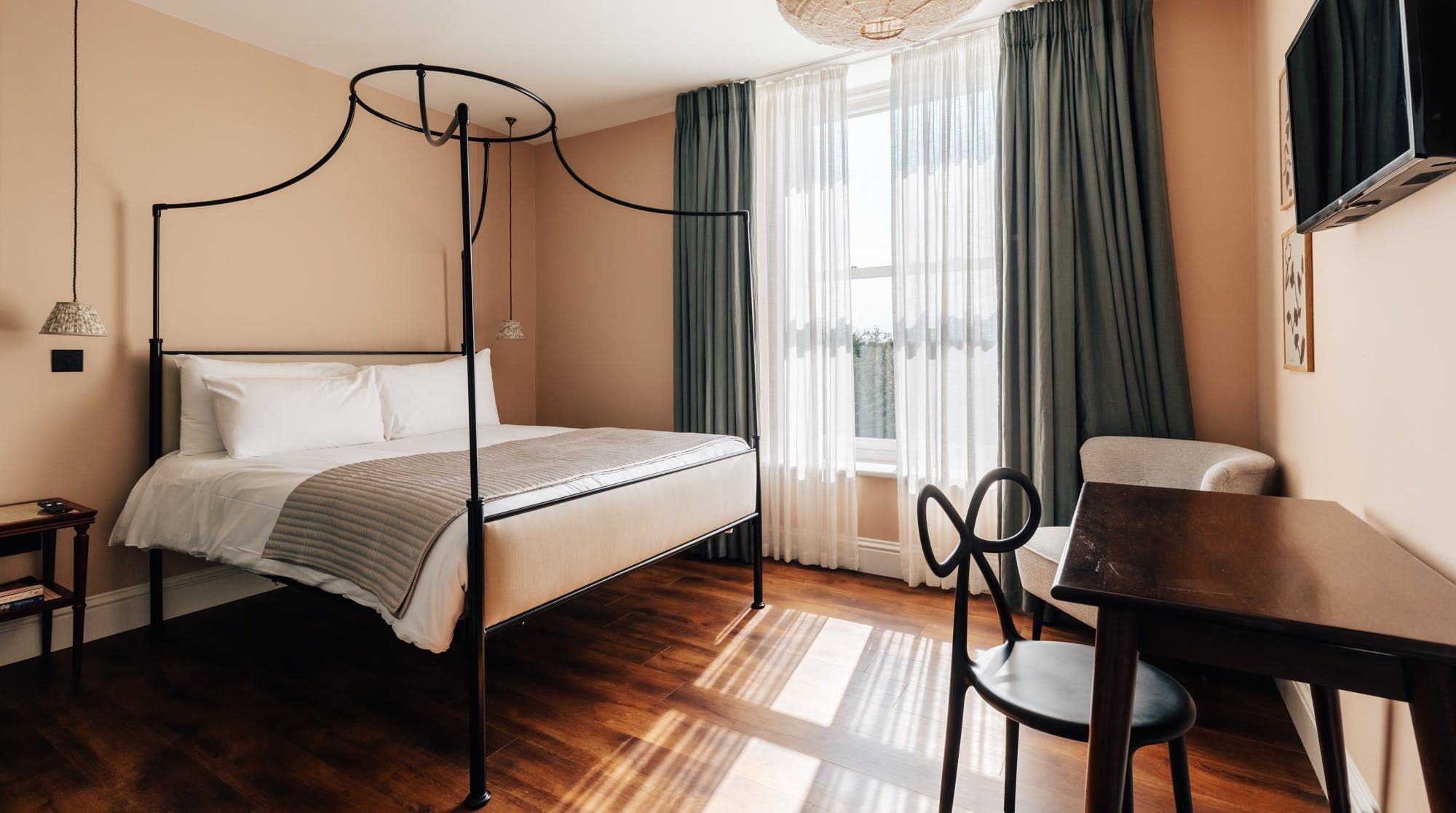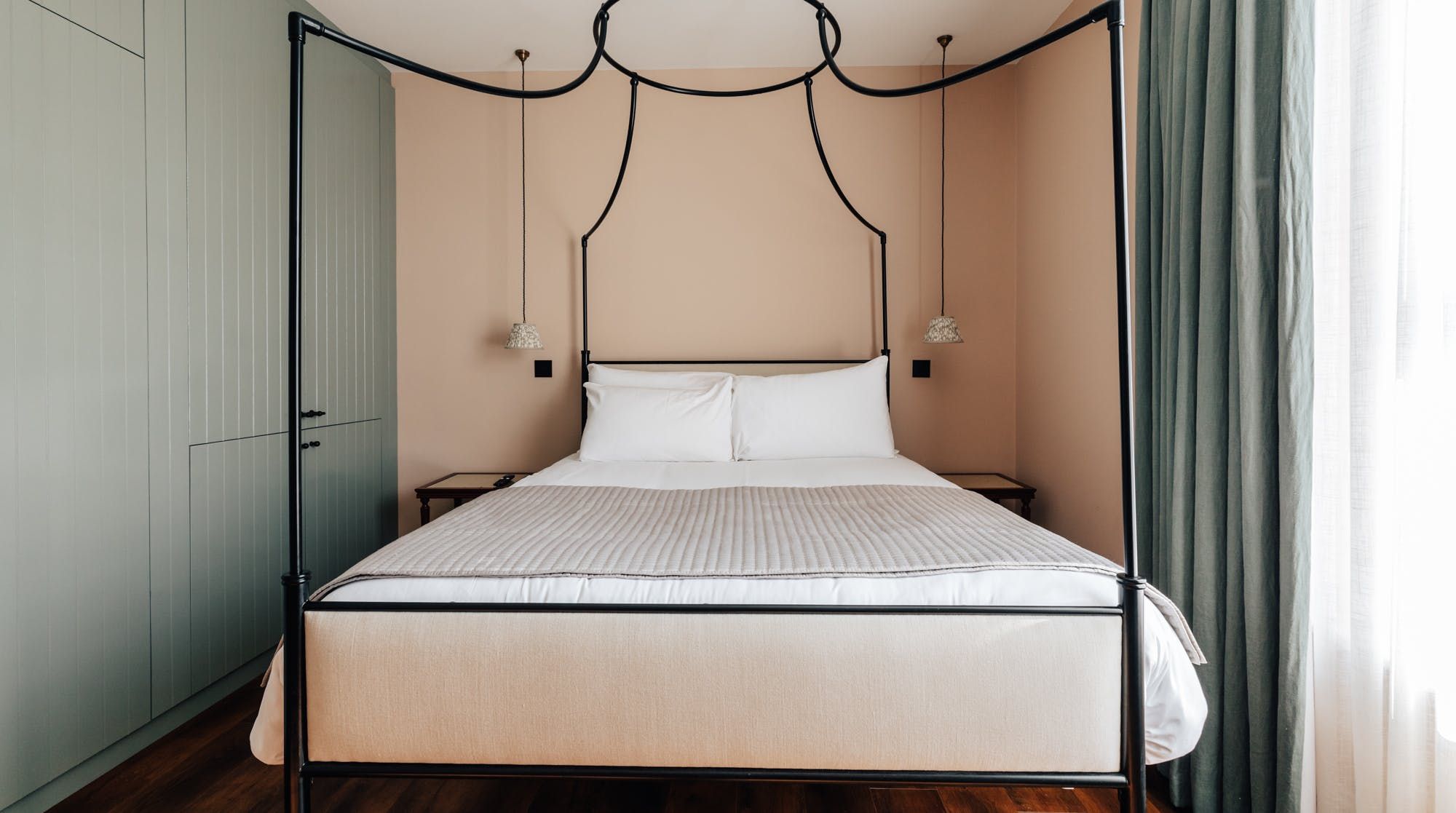 We’re particularly fond of the design-led bedrooms. With a handsome four-poster bed and a desk space in one, and a warm pink and forest green colour scheme in the other, you’ll have no trouble finding a dreamy night’s sleep in their comfortable king-size beds. Factor in the swoon-worthy bathrooms with their rainfall showers and you’ve got everything you need for a relaxing, carefree stay.