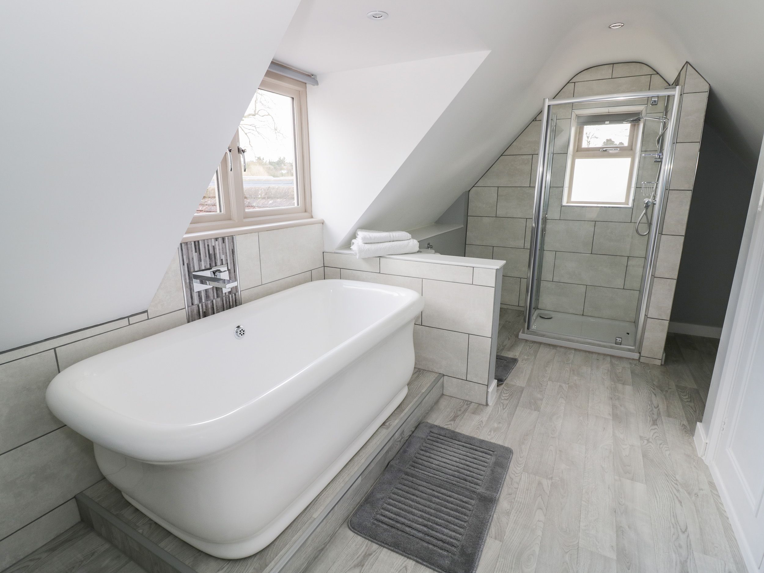 Accomodation Details Four bedrooms: 1 x super-king-size with en-suite bathroom with freestanding bath, walk-in shower, basin and WC, 1 x ground-floor super king-size (zip/link, can be twin on request) with en-suite walk-in shower, basin and WC, 1 x double, 1 x king-size. Shower room with walk-in shower, basin and WC. Ground-floor cloakroom with basin and WC. Kitchen. Dining room. Sitting room with woodburning stove. Snug