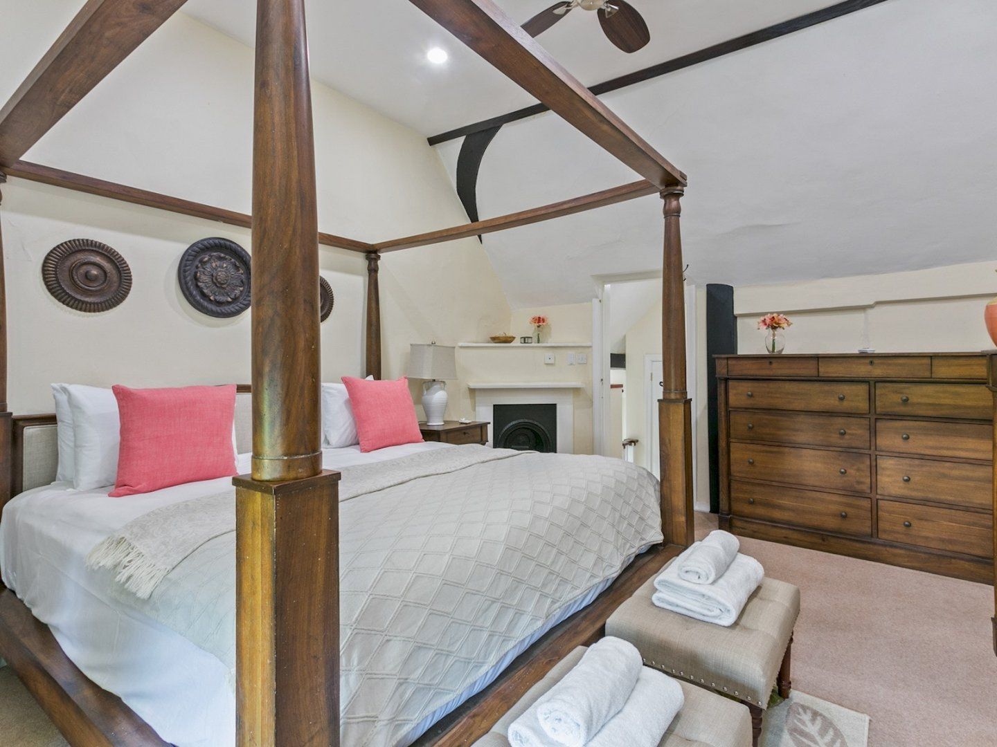 Despite being tucked away on the outskirts of Burnham village, it’s worth noting that this historic home is situated by the side of an – albeit fairly quiet – road. Although both cosy and capacious – featuring five bedrooms as well as separate breakfast, dining and sitting rooms – we’ll bet it’s this home’s four-poster bedroom and en-suite marble bathroom you’ll be fighting over. Nevertheless, in our opinion, the walled garden is the real showstopper – perfect for watching the kids play while enjoying alfresco drinks in the sun. Under an hour from London, this home’s location makes it ideal for daytrips to Windsor, Legoland and the Thames Valley.